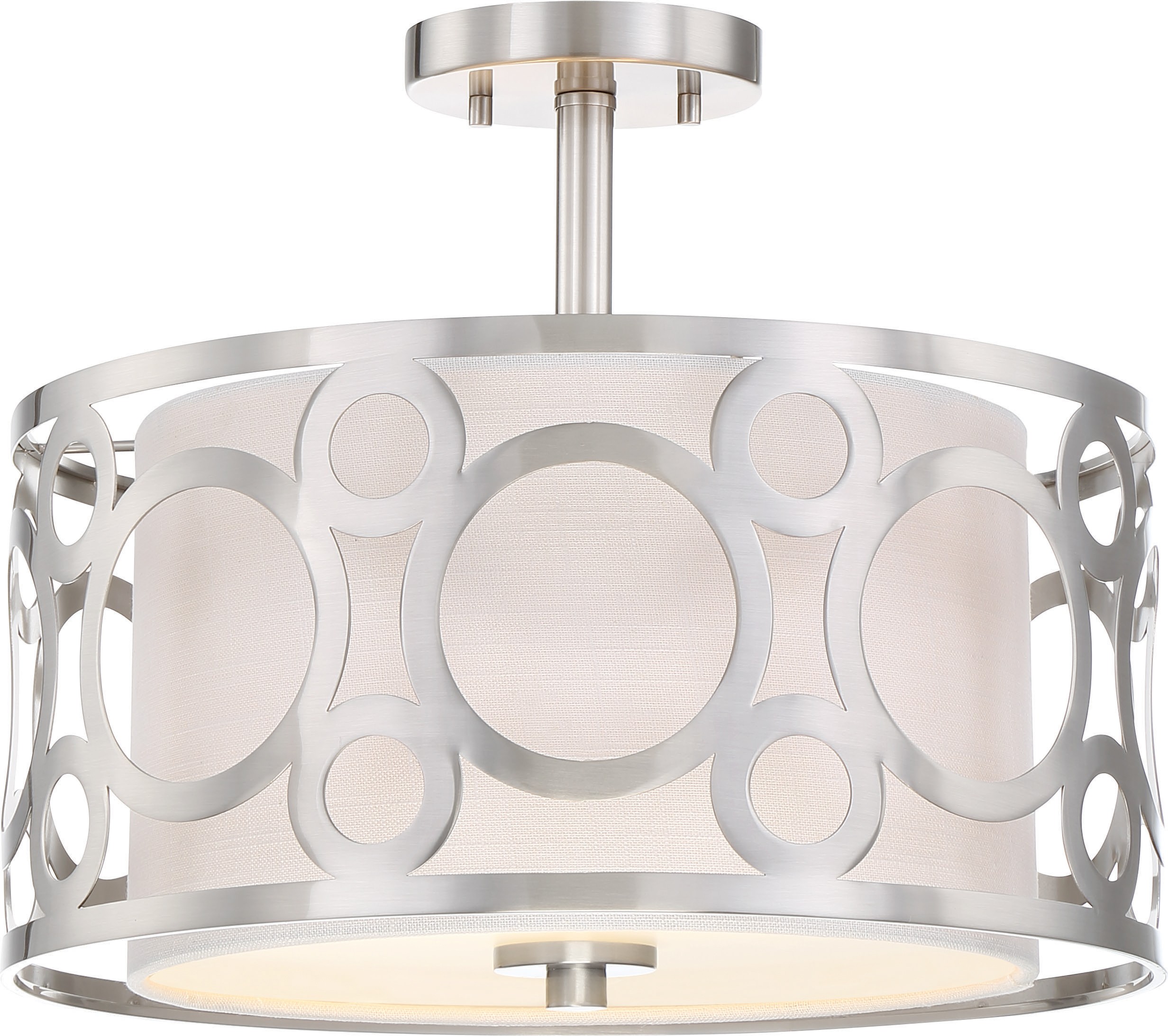 Nuvo Lighting 60/5948 Filigree 2 Light Semi Flush Mount White Linen Fabric Shade Beige Linen Fabric Shade