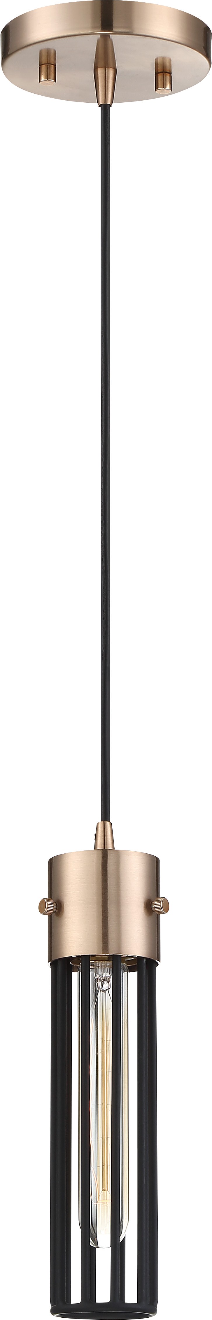 Nuvo Lighting 60/6612 Eaves 1 Light Pendant Fixture Copper Brushed Brass Finish with Matte Black Cage